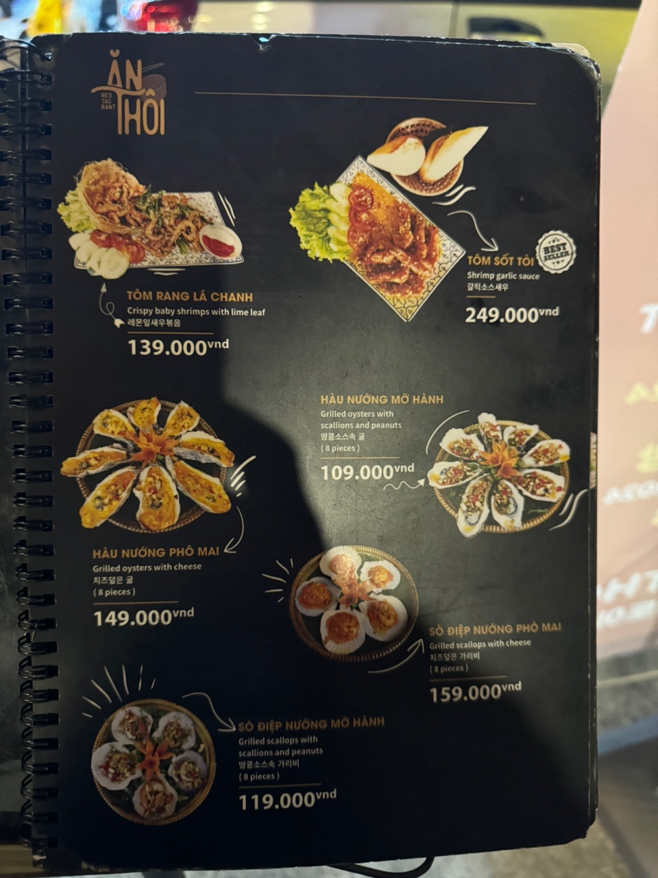 최소 4가지 음식정도 시키면 80-100만 동 정도 나오는데